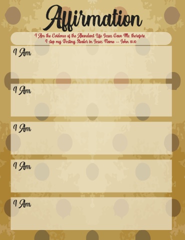 Affirmation I Am the Evidence of the Abundant Life Jesus Gave Me, therefore, I stop my Destiny Stealer in Jesus Name -- John 10:10 I Am I Am I Am I Am I Am