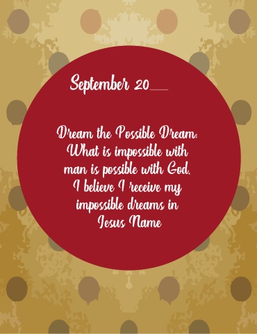 September 20 Dream the Possible Dream: What is impossible with man is possible with God. I believe I receive my impossible dreams in Jesus Name