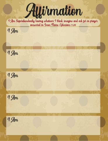 Affirmation I Am Superabundantly having whatever I think, imagine and ask for in prayer, answered in Jesus Name. Ephesians 3:20 I Am I Am I Am I Am I Am