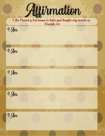 Affirmation I Am Favored of God because he thinks good thoughts only towards me -Jeremiah 29:11 I Am I Am I Am I Am I Am