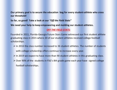 Founded in 2011, Florida-Georgia Future Stars Game witnessed our first student athlete