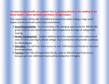 ➢ Social Responsibility: You're providing a life changing opportunity for 300 6th-8th