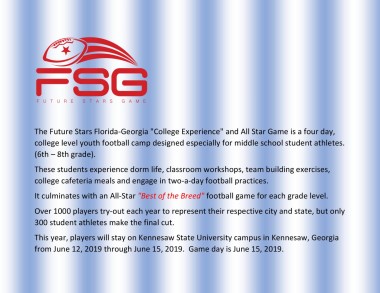 The Future Stars Florida-Georgia "College Experience" and All Star Game is a four day,