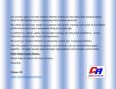 We want our Student Athletes to ultimately evolve into Corporate Athletes.