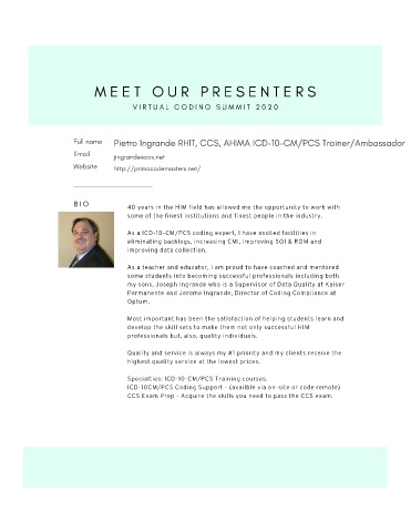 Pietro Ingrande RHIT, CCS, AHIMA ICD-10-CM/PCS Trainer/Ambassador