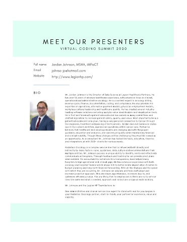 Mr. Jordan Johnson is the Director of Data Science at Legion Healthcare Partners. He