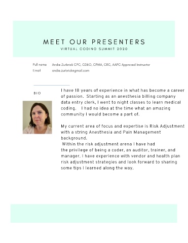 Full name Andie Zurbrick CPC, CDEO, CPMA, CRC, AAPC Approved Instructor