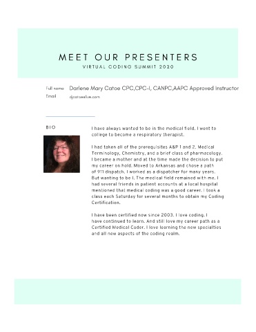 Darlene Mary Catoe CPC,CPC-I, CANPC,AAPC Approved Instructor